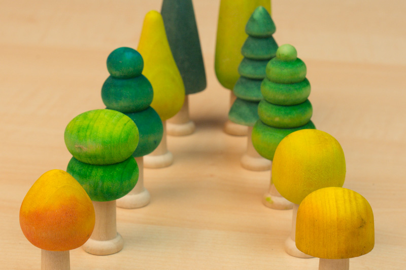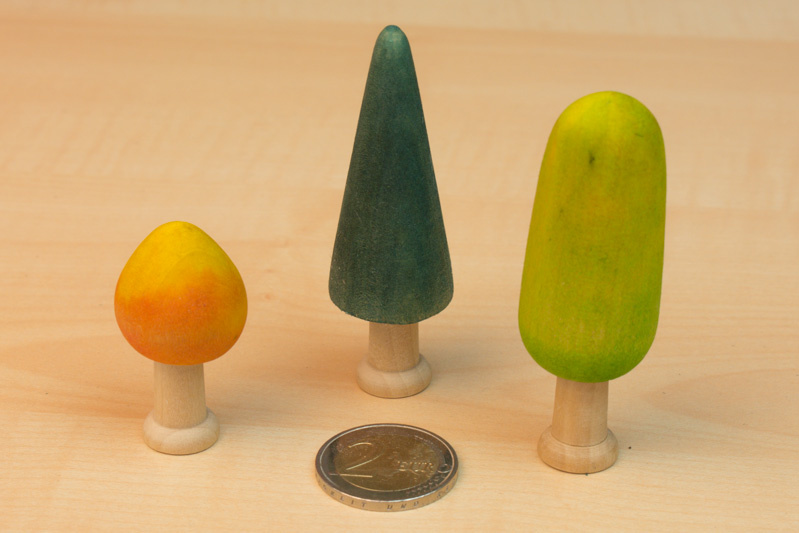 Die Bäume sind mit Lebensmittelfarbe und Tusche bemalt - daher nicht speichelfest.