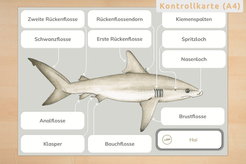 • Definitionskarten Hai - Infos über die Besonderheiten und Aufgaben der verschiedenen Körperteile des Hais