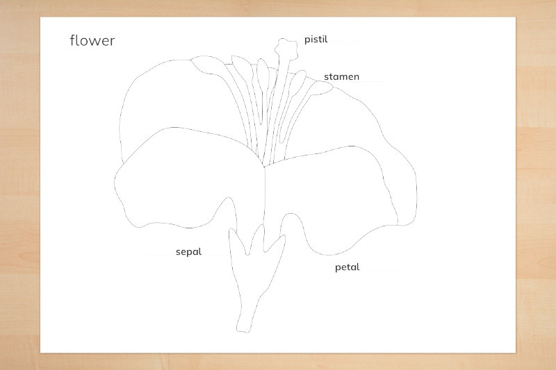 Außerdem eine Anatomie der Blüte mit einer farbigen Zeichnung mit mehr Elementen zum Selbstbeschriften mit Kontrollkarte.