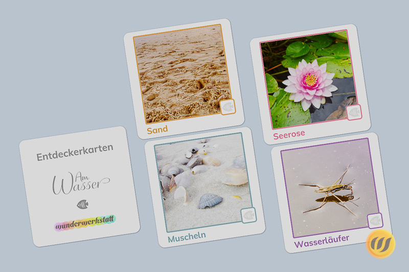 Gut zum Wasserset passen die Entdeckerkarten "Im Wald", "Auf Reisen" und "Beim Wandern"