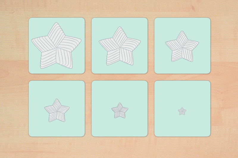 - Orientierung - orientation: Eine kleine Größensortierung befriedigt nicht nur das Ordnungsschema, es kann auch Kindern im Orientierungsschema Freude bereiten, die Sterne aus unterschiedlichen Perspektiven zu betrachten - die kleinsten Sterne z.B. mit der Lupe zu untersuchen, um den passenden großen Stern zu finden.