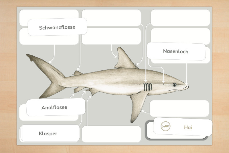 • Definitionskarten Hai - Infos über die Besonderheiten und Aufgaben der verschiedenen Körperteile des Hais
