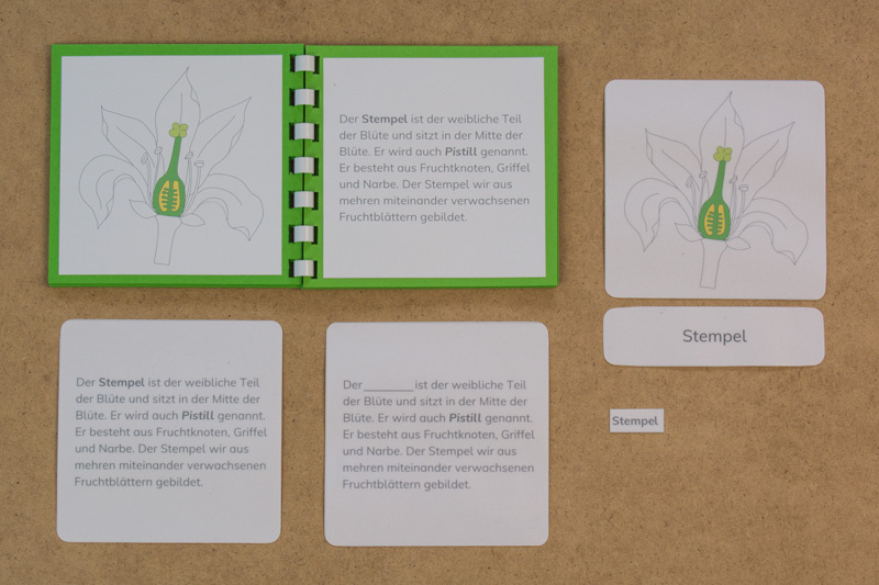 Das Material kann als Ergänzung zum Botanischen Puzzle "Blüte" eingesetzt werden.